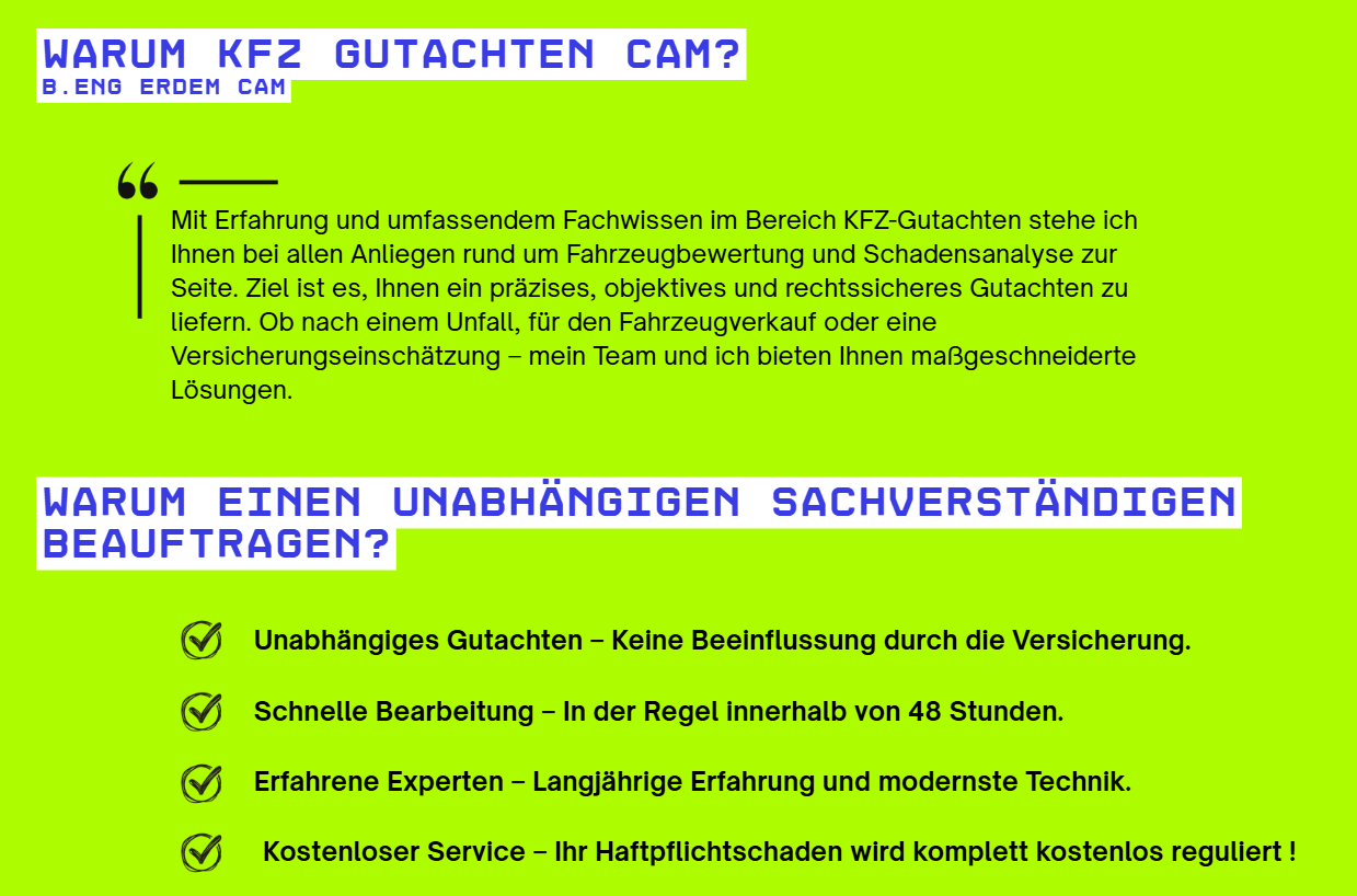 Wir analysieren das Fahrzeug gründlich und dokumentieren alles. Schäden werden detailliert erfasst, fotografiert und technisch bewertet.